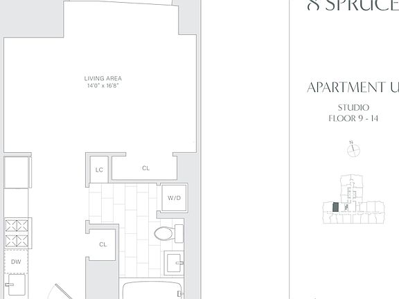 The photos in the gallery are an example of 8 Spruce apartments. The actual layout, finishes, and views may vary. Consult our leasing specialists for details.