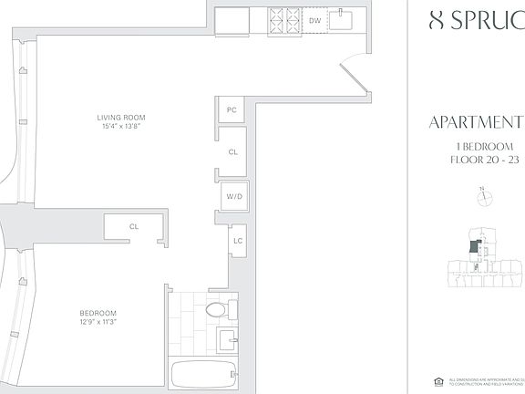 The photos in the gallery are an example of 8 Spruce apartments. The actual layout, finishes, and views may vary. Consult our leasing specialists for details.