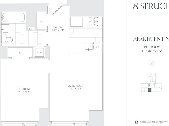 The photos in the gallery are an example of 8 Spruce apartments. The actual layout, finishes, and views may vary. Consult our leasing specialists for details.