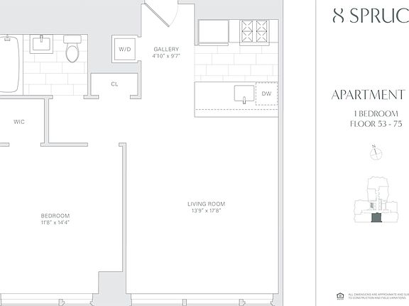 The photos in the gallery are an example of 8 Spruce apartments. The actual layout, finishes, and views may vary. Consult our leasing specialists for details.
