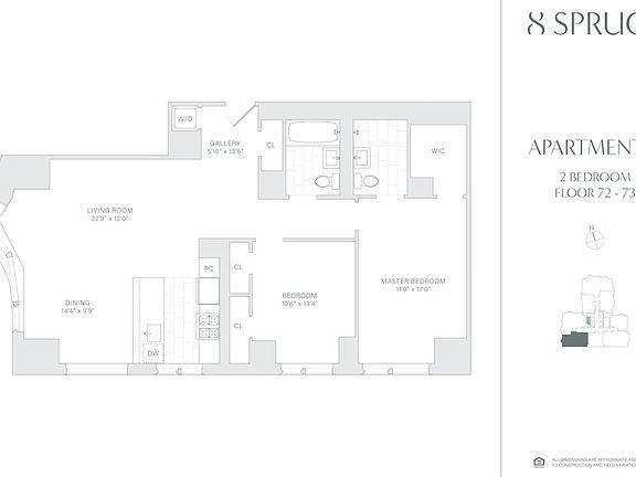 For a limited time, we are offering a $2,500 Visa gift card and 1 Month Broker OP for this unit! We are currently offering a reduced security deposit for eligible applicants and 1-year of free WIFI/Cable for all applicants! Introducing 8 Spruce. The epitome of elegance and ease, one look at this downtown marvel, and you'll know why. At 76 stories tall, 8 Spruce offers an exceptional array of residences with unparalleled views of New York Citys downtown and midtown skylines, rivers, bridges, parks, and landmarks. Standing at 870 feet tall in NYCs Financial District, this kind of high rise living breaks the mold and opens you up to a new, more luminous kind of living. The photos in the gallery are an example of 8 Spruce apartments. The actual layout, finishes, and views may vary. Consult our leasing specialists for details. Fees Include: Background Screening Fee: $20 per person Holding Deposit: $500 applied to first months rent Security Deposit: $1,000 up to 1 Months rent dependent on credit score Optional fees include: Bike Storage, Amenities /Gym membership and on-site parking