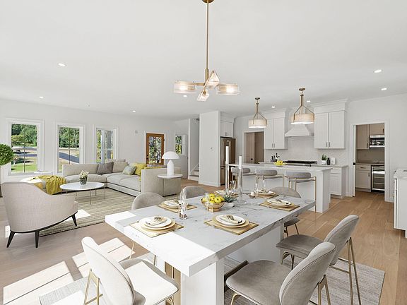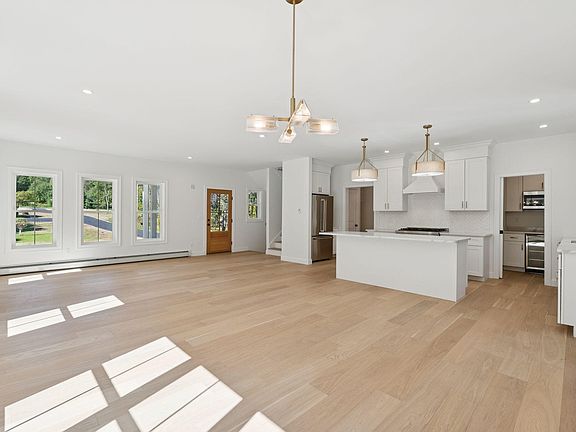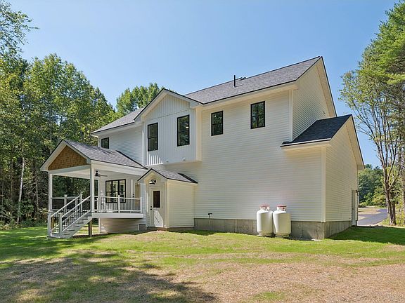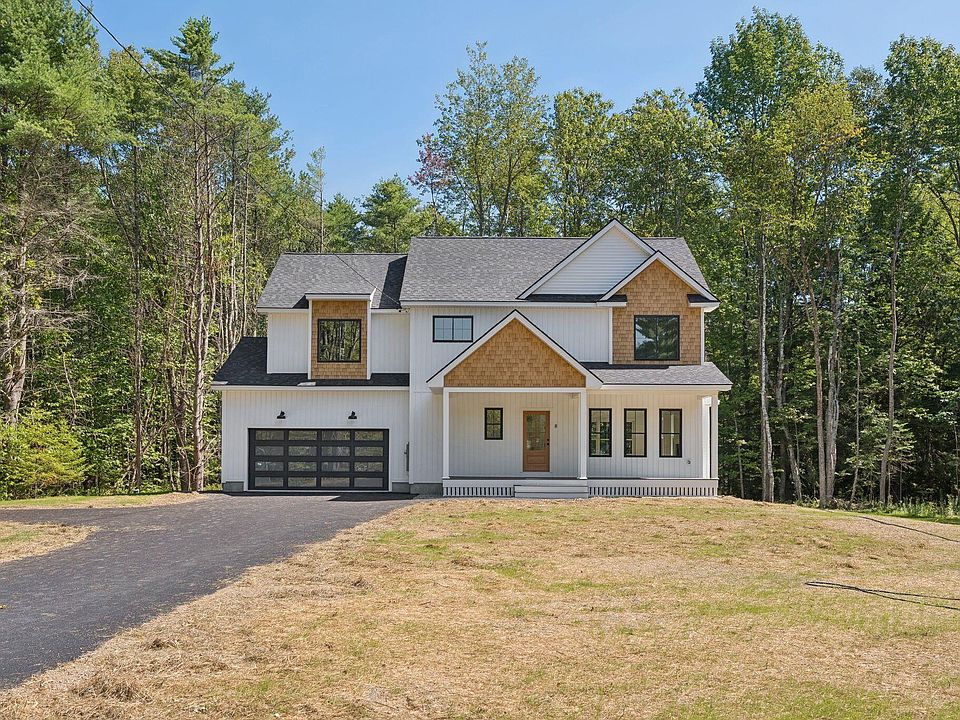 Privately set on 2.5 acres, this stunning new build showcases exceptional craftsmanship, fine details, and modern design. From the freshly paved driveway to the charming board-and-batten siding, welcoming farmer's porch, and spacious two-car garage, every feature makes a striking first impression. Inside, nearly 2,800 sq. ft. of thoughtfully designed living space features 9-foot ceilings and abundant natural light. The open-concept layout centers on a dream kitchen with quartz countertops, tiled backsplash, large center island, walk-in butler's pantry, and seamless flow to the dining area and sun-filled living room with a gas fireplace and custom herringbone surround. A covered deck extends your living space outdoors, offering peaceful views of mature trees. Upstairs, a stunning staircase leads to four bedrooms, including a luxurious primary suite with a tray ceiling, window bench, dual walk-in closets, and a spa-like bath with tiled shower and double vanities. Three additional bedrooms, a full bath with double sinks, and a convenient laundry room complete the second floor. The finished daylight basement expands your options with space for a media room, home gym, or retreat, plus storage and direct backyard access.