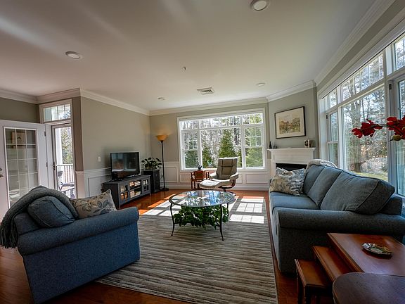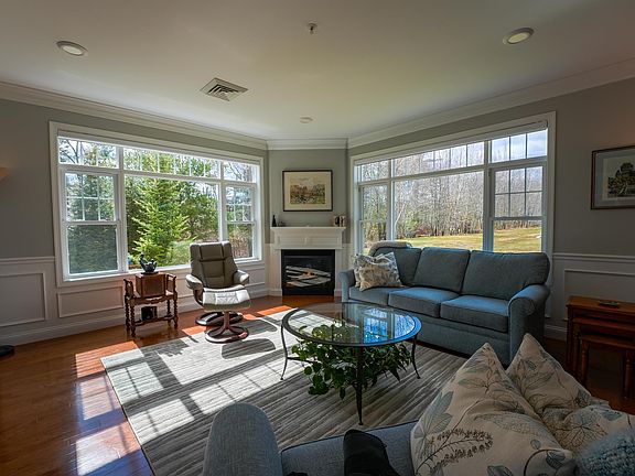 Stunning first floor end-unit with picturesque views and ample sunlight in The Village at Sterling Hill, Exeter's Premier 55+ Community! You will love the fluid floor plan of this single-level living unit offering a capacious living area complete with nine foot ceilings and an open concept kitchen/dining/living room perfect for entertaining large family gatherings! A gas fireplace, wainscoting, and beautiful finished molding all add a warmth and charm to the esthetic that will make you truly feel at home. Inside of the two private bedrooms the current owner has upgraded each of the closets with custom shelving. Need to focus? The custom in-home office offers a nice private retreat for working at home (or the need for a designated hobby/TV area). Want a moment of zen? You may also enjoy your morning coffee (or evening cocktail) on your own private back deck area! Groceries in the winter? Take the elevator from the garage or walk up the steps--your choice! And if you just feel like having a little fun, the community clubhouse offers plenty of social activities for all community members. Last but not least, being located just off of the highway means that area beaches, local shopping, entertainment and endless amenities are only minutes away!