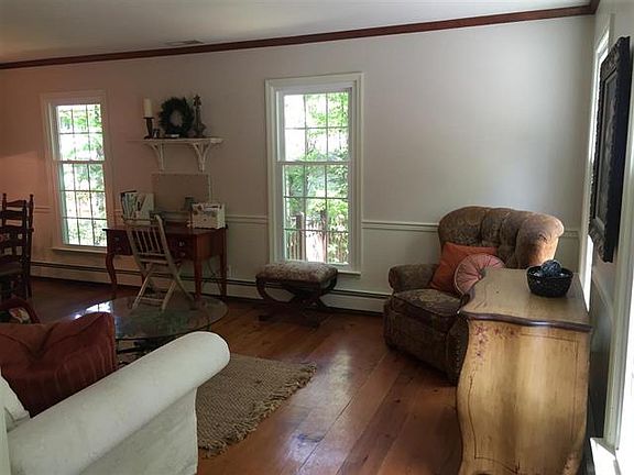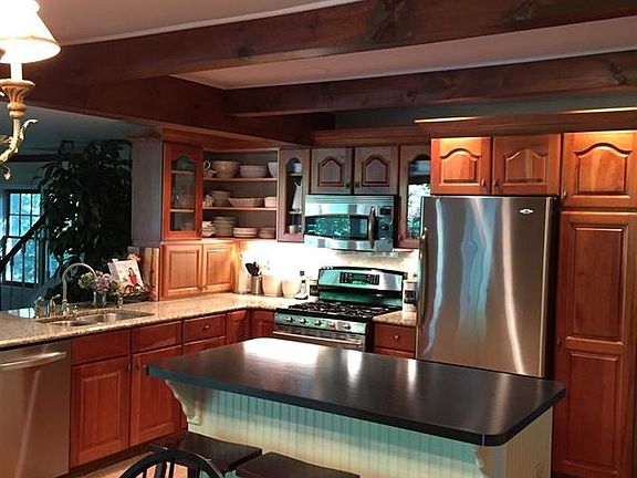 See the Virtual Tour! Beautiful home w open floor plan perfect for contemporary living! Amenities include wide plank & hardwood floors, post & beam & vaulted ceilings, 2 fireplaces, 3.1 baths, granite eat-in kitchen w/SS appliances. Freshly painted interior. Floor to ceiling windows flood 1st floor w/ sunlight. Huge Master Bedroom Suite, granite bath w/dual sinks & walk-in closet. 2nd Master Bed. perfect for au Pair or in-laws. Lg deck, private backyard and i-g pool. Decorative woodstove in kitchen.