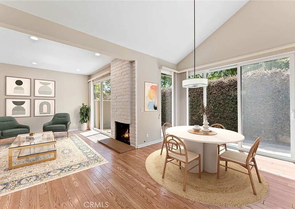 Welcome to 8 Stonewood! A Beautiful Single-Level, 3 Bedroom, 2 Bath, End Unit, Single Family Residence located in the Prestigious community of Woodbridge. The Open Floor Plan and abundance of gorgeous dual-pane Floor to Ceiling windows bathe the home with natural light! The Living Room features a High Ceiling, Recessed Lighting and a lovely Brick Fireplace and the Dining Room has a Vaulted Beamed Ceiling and leads out to a Large, Private Patio! The sunny kitchen was just updated with New Appliances; dishwasher, range and microwave. The living areas have easy to maintain Aberdeen Oak Light laminate Flooring, The Private Primary suite features Dual Vanities 2 Large Mirrored Wardrobes with custom Built-ins and sliding glass doors to a private patio. The spacious secondary bedrooms also have mirrored wardrobes with built-ins. You also have Direct Access to the Oversized 2 Car Garage which has epoxy flooring, storage cabinets and, conveniently located, Laundry facilities. Out front is an unassigned guest Parking Pad, too. The home was just freshly painted throughout and is definitely move-in ready! And the HOA is painting the exteriors shortly, as well!! Located very close to Shorebird Park; its Pool & Spa & the North Lake, as well. Close to Irvine Spectrum, Restaurants & Shopping. All this along with the privilege to enjoy all the numerous Woodbridge Resort-Style Amenities-including: 2 lakes, 20+ pools, 15+ spas, 20+ sports courts, 4 pickleball courts, numerous parks & much more! Irvine’s Great Reputation & Award Winning Schools and Easy Access to both the 405 & 5 fwys make this A wonderful place to call home!