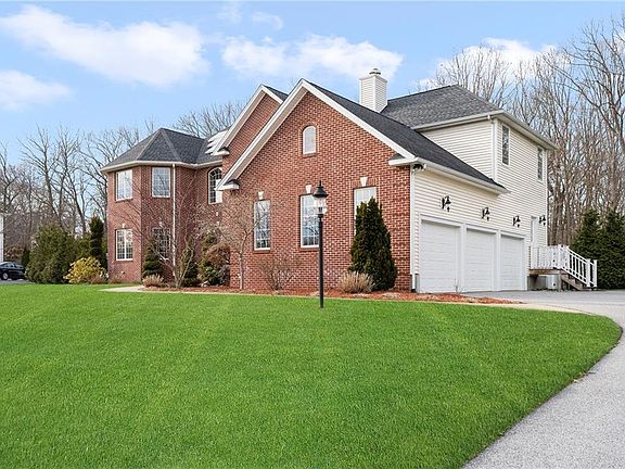 Welcome to Fox Ridge Estates! This lovely 5 bedroom, 5.5 bath Colonial is just waiting for a new owner to call it home. Set on over 2 acres with vegetable gardens and plenty of space for gracious outdoor entertaining. You are welcomed by a double foyer to an open concept living space with large kitchen, dining area, living room with a gas fireplace and laundry down the hall plus an additional half bath. Currently the first floor configuration has the formal dining space set up as a possible in-law, first floor master, en-suite bath, walk-in closet with potential access to the caterers kitchen. Your second floor boasts 4 bedrooms ALL EN-SUITE and a great center hall den with a gas fireplace, a great spot for cozy family gatherings, movie nights or play area. This home is only 4 miles from Garden City Center and 12 miles from Downtown Providence. Come see the best Cranston has to offer.