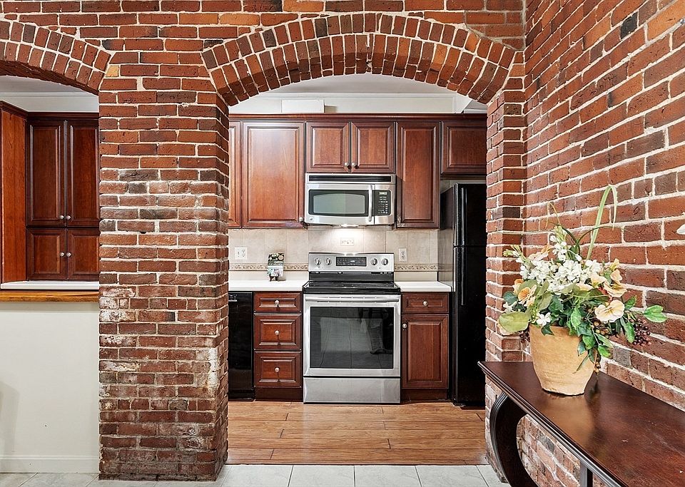 Single level livingOriginal architectural detailsSpotless kitchenExposed brick wallsFlexible main bedroomSpacious dining areaRich wood cabinetry