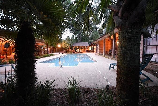 3 bedroom 2 bath pool, guest house with 1 bedroom 1 bath, 4 car carport , outside cooking and dining area, open wood deck, open and covered patio, hot tub,beautiful creek on property