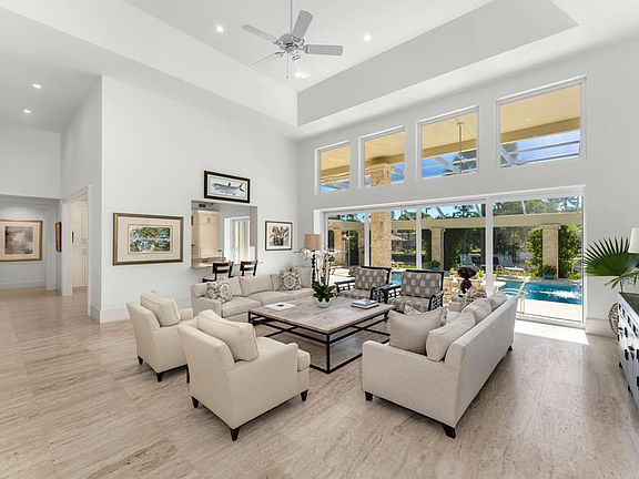 This extraordinary waterfront residence is perfectly situated to take advantage of the picturesque water views. Exquisite attention to detail is evident throughout, including a formal dining room and living room. A grand master suite features two private offices, along with a walk-in closet with custom built-ins. Three beautifully appointed guest suites each offer en suite baths. All on one level, this expansive home also has an inviting den/media room with water views. Enjoy outdoor entertaining at its finest from the multiple covered living spaces, summer kitchen, all by the water's edge. Boasting 140 feet of seawall designed for an 80-foot yacht and numerous water toys, this property also includes a beautiful screened pool patio with a spa, anchoring this wonderful outdoor living area. A perfect family retreat to enjoy all Ocean Reef has to offer, with a stunning pool, private dock, and lush tropical landscaping. This magnificent home offers unparalleled privacy in one of Ocean Reef's highly sought-after neighborhoods.