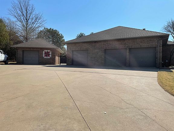 Get Ready for Summer ,and entertaining in your new dream home. Grand entrance to the fully-fenced back yard with in-ground pool and detached bonus garage, you will be impressed (and surrounded by) quality! This full brick ranch has it all. Two main floor bedrooms and two more bedrooms in the full basement. The home features an open concept with great flow throughout. Main floor and basement both have a full kitchen, each with granite countertops. On the main floor the kitchen has a separate built-in buffet plus a large serving island. The basement family room has a wood-burning fireplace which is vented for whole house heat. Where else can you get a private, 0.74 acres in the city limits? Beautifully landscaped – this lot features a large outdoor covered back patio with composite decking and access from the master bedroom, overlooking an in-ground 20x44 pool. The three car attached garage is a great benefit but you’ll enjoy the additional detached garage space, this garage has new electrical, One of the garage's has a new car lift (9000lbs), so you can do your own car maintenance. There is also access to the basement from the garage. The home has a wired security system which will stay with the home. Situated close to the recently updated golf course, the Wellington family aquatic center, and several parks and schools. This established neighborhood is ready for you! Seller request no closing till May 31,2022