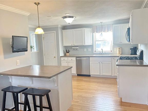 Beautiful 3 bed 2 bath fully dormered Cape which features bright remodeled kitchen, new mudroom/pantry area, large open dining room, living room, office, updated full bath and new wood floors on first floor. Second floor features a very spacious Master Bedroom with plenty of relaxing space, 2 other bedrooms and a full remodeled bath. Lower level offers family room and extra room for Den or 2nd Office. Updates include newer roof, gutters, AC and on demand Gas Rinnai Heat & hot water system. Relax on the large deck while enjoying the beautiful sunsets. Very spacious yard and 2 car garage. Great Location...this home is set in a wonderful neighborhood walk to Mishnock Pond, close to all amenities and highway access. This is a truly wonderful home. Highest & Best Offers due by Monday 1/24 - Noon please. Call with any questions - Thank you.