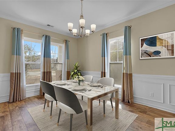 Welcome to this stunning 4-bed, 2.5-bath home with a versatile loft/flex space in Pooler’s sought-after Harmony neighborhood! Thoughtfully designed with modern upgrades, this home features custom built-ins, energy-efficient LED lighting, USB outlets, a Nest thermostat, and a WiFi-enabled Rainbird irrigation system. This chef's kitchen is complete with Whirlpool stainless steel appliances, while French doors open to a tranquil backyard overlooking a stocked pond. Situated on a cul-de-sac, the home boasts a gated backyard for added privacy. The spacious primary suite offers a spa-like en-suite with a double vanity and his-and-hers closets. Enjoy an upgraded air purification system and the option to include a whole-house water filtration system. A 2-car garage plus an extra parking pad provide ample space. Neighborhood amenities include a resort-style pool, fitness center, dog park, and playground—all just minutes from shopping, the Hyundai plant, Gulfstream, and the airport.
