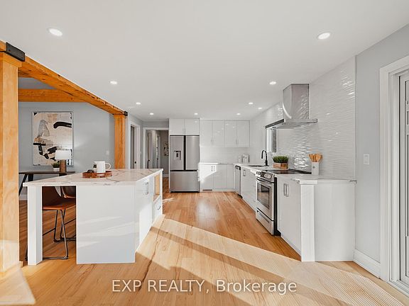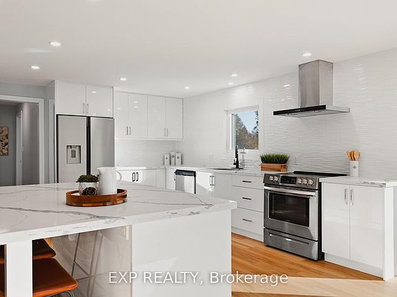 Remarks Public Remarks: Welcome to 8 Talbot Street, a stunning bungalow that combines modern comfort with timeless design, offering 2,969 sq. ft. of finished living space on just over an acre. With five bedrooms and three bathrooms, this home provides plenty of room for family living, entertaining, and guests. Step inside to an open-concept main floor that immediately impresses with its vaulted ceilings and exposed beams, filling the space with light and character. The stone electric fireplace serves as a beautiful focal point in the living area, while pot lights throughout add warmth and modern style. The kitchen is the heart of the home, featuring quartz countertops, stainless steel appliances including a hood range and dishwasher, and a large island perfect for gathering. The primary bedroom, located at the front of the home, includes its own side-door exit and a three-piece ensuite with a stand-up shower, creating a private and convenient retreat. The walkout basement extends the living space with two additional bedrooms, a full bath, and direct access to the outdoors-ideal for guests, extended family, or a recreation area. Outside, you'll find exceptional curb appeal and space to enjoy the outdoors. The backyard is fully fenced and features both a deck and lower patio slab, offering multiple areas for entertaining or relaxing. The two-entrance gravel driveway leads to an impressive six-car detached garage, providing parking for up to 14 vehicles-a dream for hobbyists or those needing extra storage. Set on a beautiful one-acre lot, this property delivers the perfect balance of privacy and convenience, offering the feel of country living while remaining close to local amenities, schools, and community attractions. With its inviting layout, modern finishes, and standout outdoor features, 8 Talbot Street is a rare find that truly has it all.