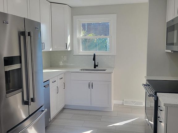 Welcome to 8 Taven Keep Rd. This charming ranch is 1775 Sq Ft and is located in a Cul-De-Sac. This home has had many upgrades including new roof with GAF Lifetime Warranty, new vinyl windows, new fiberglass doors, and refinished hardwood floors. The main level consists of 3 bedrooms and 1 fully renovated bathroom. In the Kitchen you will see new 42" shaker style cabinets (Soft Close), quartz countertops, new stainless appliances, and LVT flooring. The lower level features a half finished basement with a half bath and stone fireplace.