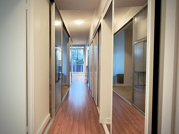 This Stylish One-Bedroom Condo is located in the Heart of Downtown Offering an Urban Lifestyle with Convenient Access to Restaurants, Transit, Shopping and Entertainment. This Unit Features Sliding Bedroom Doors, Stainless Steel Fridge, Full Size Stove, Quartz Kitchen Counter Top, Laminate Flooring & Private 188 Sq. Ft. Terrace. The Bedroom Has Comfort and Tranquility With Generous Closet Space.