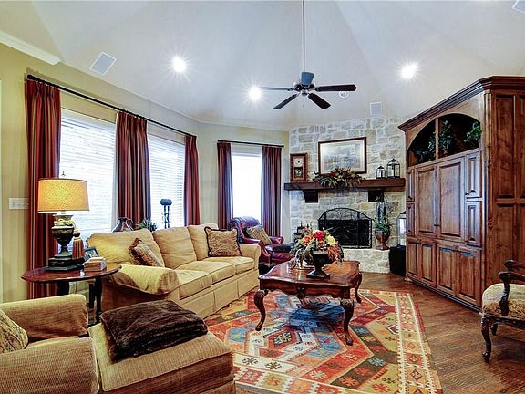 Welcome to 8 Tennis Village Dr. in the highly sought-after Buffalo Creek community of Heath, TX. This stunning 4-bedroom, 3-bath home offers 2,612 sq. ft. of beautifully designed living space with hand-scraped hardwood floors, soaring ceilings, and elegant arch openings throughout. The spacious kitchen is a chef's dream, featuring granite countertops, detailed cabinetry, a center island with sink, and double ovens. The inviting living room showcases a stone fireplace, perfect for cozy evenings, while the master suite boasts dual vanities, a large walk-in shower, and an oversized closet. Step outside to your private resort-style patio with pergola, ideal for entertaining. With a 3-car garage, charming stone exterior, and location within exemplary Rockwall ISD, this home truly has it all.