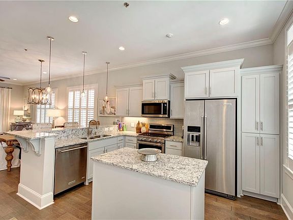 Beautiful 3 bedroom, 3.5 bath, 2 story townhouse style beach cottage with single car garage located in The Cottages at Jekyll Island. Open floor concept. Kitchen, dining and living area open to the master bedroom suite on the first floor. Handcrafted cabinetry, granite counters, wood floors, stainless Kitchen Aid appliances, 10 ft. ceilings, plantation shutters, gas log fireplace & water softener are some of the upgrades and interior finishes. Enjoy evenings on the screened lower porch or 470 sqft paver patio complete with gas fire pit. Located on the 2nd floor are 2 ensuites which have access to a large screened balcony, large walk-in conditioned attic and laundry room. Onsite MGMT Primary, secondary or income producing property. Additional Furniture Package, Just a few steps from the North Cottage Beach access. Ownership includes access to The Cottages at Jekyll Island oceanfront Clubhouse, pool, fitness center, beach deck and fire pit.