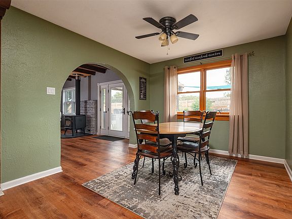 Great opportunity to own a 3-bedroom + Den/office, 2-bath, 2-car garage home on a 1-acre private treed lot in Eldorado on a quiet road. Recently remodeled with luxury vinyl flooring in living areas, new bathrooms, new wood stove, new kitchen appliances, newly installed fans, and freshly painted. Relax in the beautifully landscaped fenced-in backyard observe the sunset over the Jemez mountain range and then gaze up to the dazzling star-filled night sky. Situated in the best location near the first entrance with a quick commute to town, walking distance to Eldorado Community School, community center, pool, tennis courts, playground, and dog park. These features along with 5-mini-split cooling/heating units make this a turnkey home, ready to move into.
