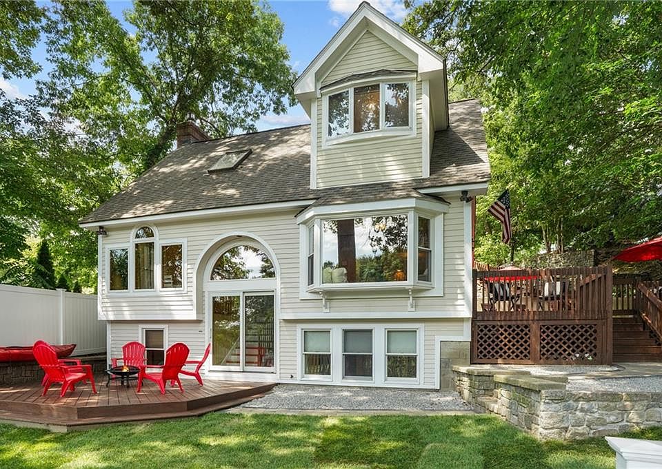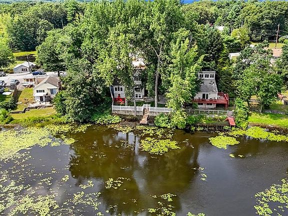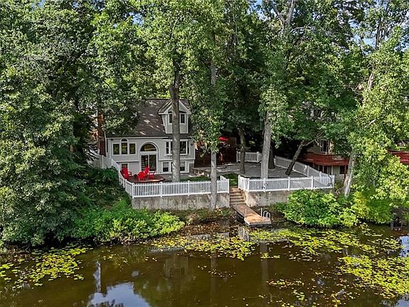 Catch a breeze on this captivating property offering sophistication, relaxation and coveted waterfront appeal. Located in a hidden dead-end plat in Greenville with easy access to highways, shopping, and a top-rated school system, this contemporary-style home has direct waterfront access complemented by a picture-perfect yard layered with multi-level decks, stone patios, and a private dock ~ perfect for fishing, kayaking, and accommodating small trolling boats. Inside, the open floor plan is enhanced by vaulted ceilings, skylights, and windows galore, providing unlimited water views. Hardwood floors add warmth throughout, including in the spacious living and dining rooms, highlighted by a gas fireplace to enjoy on cozy evenings. The primary loft bedroom presents a comfortable private retreat, while two quaint and unique secondary bedrooms are waiting for your family and/or guests to unwind in. A brand new, top-of-the-line septic system was installed less than six months ago, providing peace of mind for years to come. This property is ideal for anyone seeking a quiet lakeside lifestyle or a picturesque setting for entertaining friends and family.