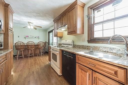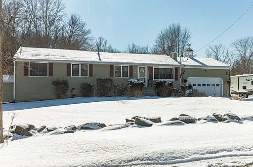 Pride of ownership shows in this well maintained ranch featuring 3 bedrooms, 2 baths, fully applianced eat-in kitchen with granite countertops and hardwood flooring, inviting heated sunroom with ceramic tile flooring, cathedral ceilings, skylight and ceiling fan, living room with hardwood and bay window, master bedroom with ceiling fan, recessed lights, great closet space and master bath, bedroom that was converted to den with French doors, hardwood and closet, a 3rd ample sized bedroom w/ wall-to-wall carpet, full bath with 1 pc. tub/shower combo. Walk-out basement is partially finished with ceramic tile flooring, a new wood burning stove perfect for gatherings and a workshop area w/ laundry. Relax or entertain on the deck overlooking the expansive level lot!! Central a/c, 2 car garage, alarm system, storage shed and more! Updates include roof (2008), furnace (2018), hot water tank (2021). Great commuter location close to schools, highways, etc! This home is a must see!