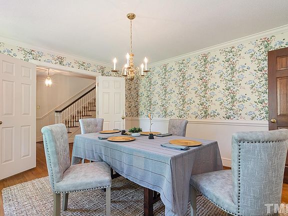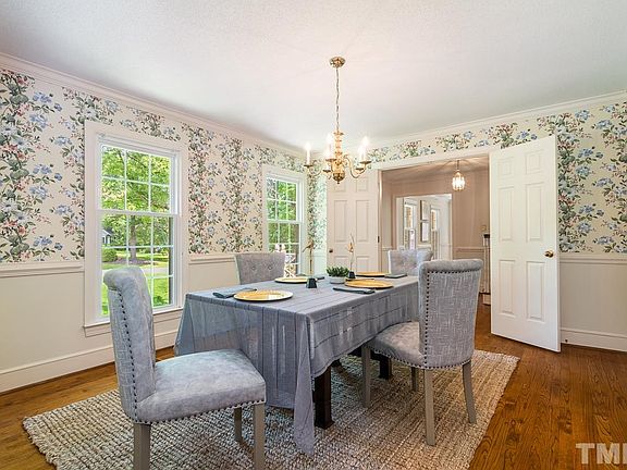 Rare Opportunity! Elegant, solidly-built, original owner's Cape Cod with main level living & HUGE 2 car rear-facing attached garage in beloved Trappers Creek. Large family room w/ fireplace, separate living room & formal dining room with dimensions that help you exhale & relax. Primary bedroom on main floor w/ huge walk in closet. New HVAC. On quiet cul-de-sac w/ private, flat, 3/4 acre lot in beautiful neighborhood just off Umstead rd & minutes to Duke & Durham.