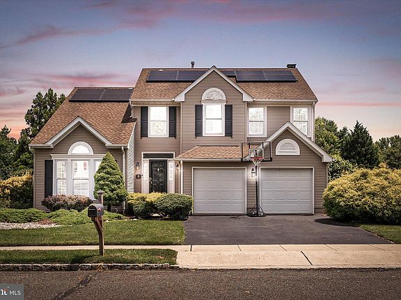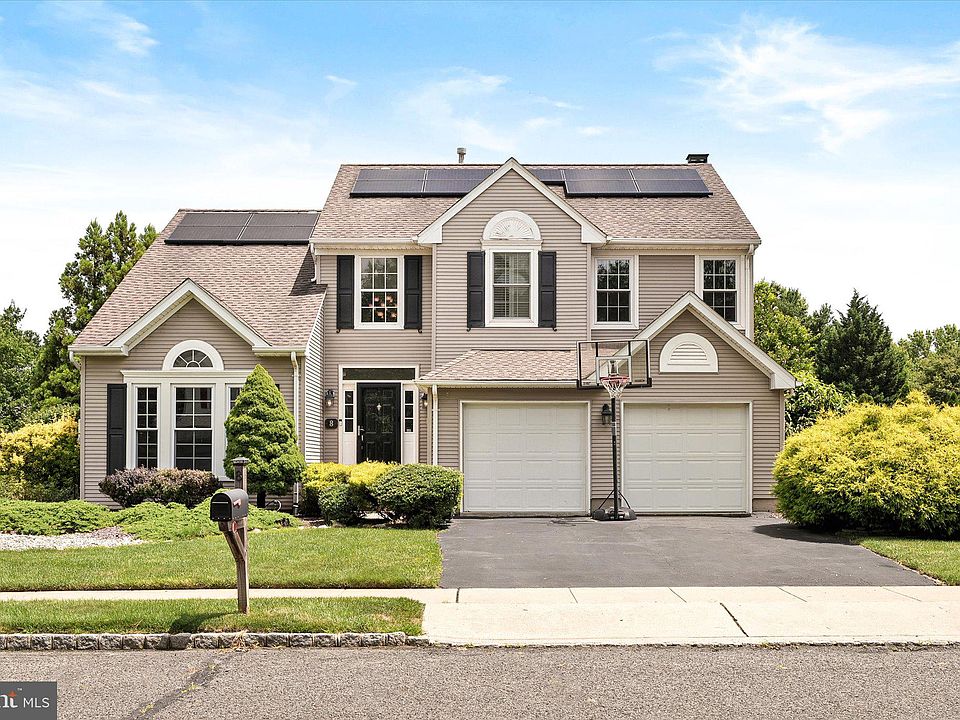 Arbor Walk’s newest listing leaves no stone unturned! This 4 bedroom, 2.5 bathroom traditional colonial home boasts almost 3,000 sq ft of finished space! Enter into the two-story foyer greeted by hardwood flooring and elaborate shadowbox & dentil molding. To the left, an open and airy formal living area w/ vaulted ceiling. A generous formal dining room resides adjacent to the upgraded kitchen w/ custom Ethan Allen cabinetry, stainless steel appliances, granite countertops and a breakfast nook filled with windows. Beyond the kitchen is a family room w/ custom built-in cabinetry and a brick-faced wood-burning fireplace! A laundry room and powder room complete the main floor. Upstairs, you will find four bedrooms - the primary suite w/ walk-in closet and a roomy ensuite bathroom w/ soaking tub and shower stall. Large finished basement with additional room for storage, two car garage w/ interior access, sprinkler system and solar panels! Beautifully landscaped fully fenced in backyard w/ expansive paver patio, built-in salt water pool, large shed and plenty of space for entertaining! Premier location just minutes from downtown Robbinsville yet also just far enough away from the hustle & bustle in order to enjoy the peace and quiet. Bussing to all three public schools available in this neighborhood! Centrally located near shopping, dining and award-winning schools (including free preschool for ages 3-4)! Just minutes from the world renowned BAPS Swaminarayan Akshardham temple. Plus, a commuter’s dream with quick access to Route 130, I-95, I-195, the New Jersey Turnpike and the Hamilton Train Station. Don’t miss the opportunity to see this home!
