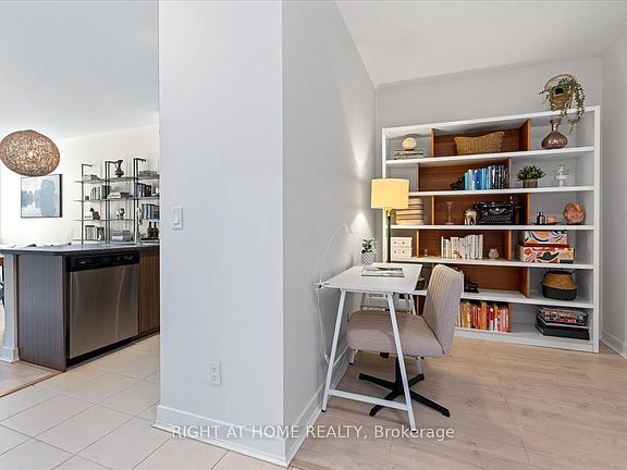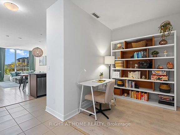 Welcome to The Village by Main Station! This bright and well-designed 650 sq ft condo features 9 ft smooth ceilings (the only floor in the building with 9 ft ceilings), a large bedroom with a closet, and a generous den that can be used as a home office, guest room, nursery, or spare bedroom. The open-concept living area flows onto an east-facing balcony with great quiet views. The modern kitchen comes with full-size stainless steel appliances and plenty of storage. Enjoy the convenience of in-suite laundry and fresh updates throughout. This well-managed building offers excellent amenities: a rooftop patio with BBQs and skyline view, fitness centre, party room, bike storage, and visitor parking. This building also features excellent soundproofing between units. Located steps from Main Subway and Danforth GO, you'll have quick access downtown, to the Beaches, Leslieville, or Greektown. You really don't need a car here. Walk to shops, cafes, parks, and all that Danforth Village has to offer. Low maintenance fees and a vibrant community make this the perfect place to call home!