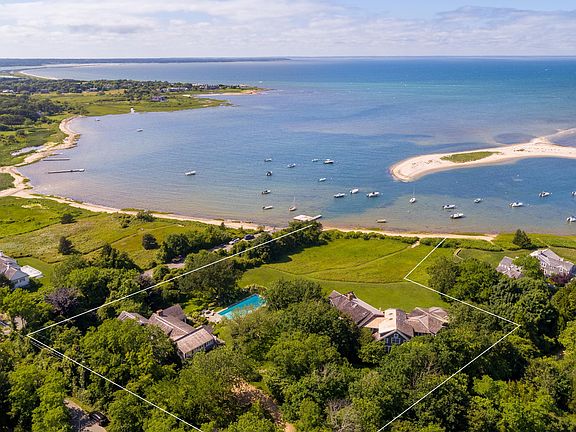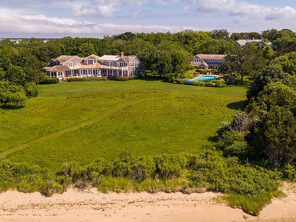 This incredibly private waterfront compound, uniquely located just minutes from historic Downtown Edgartown, is being offered for the first time in more than 30 years. This classic Martha's Vineyard retreat offers it all: a private sandy beach, boat access, more than 10,000-sq. ft. of living space in two homes, pool, barn, and endless sunsets. This unique combination would typically only be found in remote locations up island, yet here you can feel completely out of town while being a short stroll or bike ride into Edgartown and all it has to offer. Sited on three meticulously landscaped acres overlooking Eel Pond and Edgartown Harbor, nearly every room from the five-bedroom main house and four-bedroom guest house enjoys unobstructed water views. A sophisticated yet comfortable setting, this Island compound offers unmatched privacy. The expansive lawn leads to the water's edge on Eel pond where you can enjoy easy access to Edgartown Harbor and beyond from your private beach where the owners can keep a boat. This desirable private waterfrontage allows you to spend summers clamming, kayaking, paddle boarding, swimming and boating. A truly remarkable Island escape in Edgartown. This incredibly private waterfront compound, uniquely located just minutes from historic Downtown Edgartown, is being offered for the first time in more than 30 years. This classic Martha's Vineyard retreat offers it all: a private sandy beach, boat access, more than 10,000-sq. ft. of living space in two homes, pool, barn, and endless sunsets. This unique combination would typically only be found in remote locations up island, yet here you can feel completely out of town while being a short stroll or bike ride into Edgartown and all it has to offer. Sited on three meticulously landscaped acres overlooking Eel Pond and Edgartown Harbor, nearly every room from the five-bedroom main house and four-bedroom guest house enjoys unobstructed water views. A sophisticated yet comfortable setting, this Island compound offers unmatched privacy. The main residence features multiple living areas and a restful primary bedroom suite with sun deck, spacious bathroom and a private office with fireplace. Other features include a gourmet kitchen with sitting area, home office, study, pool room, four guest bedroom suites, and an oversized screened porch, perfect for summer entertaining. The guest house is equally inviting and offers welcoming living and dining area, a screened porch, family room, playful bunkroom, two additional guest bedrooms, oversized primary bedroom suite with private deck, and a three-car garage. The gunite pool and spa provide panoramic water views are surrounded by a bluestone patio, classic stonewalls, and lush plantings of colorful roses and hydrangeas. The expansive lawn leads to the water's edge on Eel pond where you can enjoy easy access to Edgartown Harbor and beyond from your private beach where the owners can keep a boat. This desirable private waterfrontage allows you to spend summers clamming, kayaking, paddle boarding, swimming and boating. A truly remarkable Island escape in Edgartown that epitomizes the best of Martha's Vineyard in one of its most coveted locations.