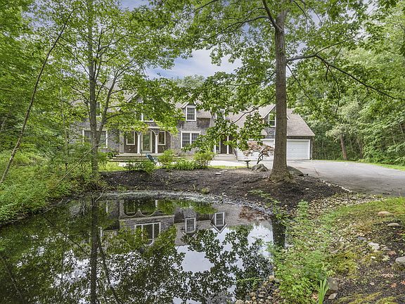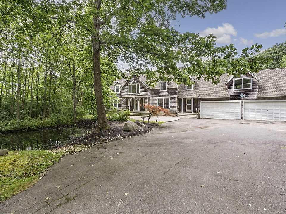 A custom shingle-styled home located near Scottow Hill is being offered for the first time! The home is situated on a lush 1+ acre lot with a picturesque pond and an inground pool creating the perfect setting for relaxing and entertainment. The front porch, with its welcoming charm, and the expansive patio overlooking a small pond with a fountain is a perfect place to enjoy your morning coffee. When inside you'll discover an open floor plan that effortlessly combines comfort and style. The large kitchen, the heart of the home, is designed for both everyday living and entertaining, featuring a seamless flow into the two dining areas, living room and the expansive rear deck overlooking the pool. Whether hosting a dinner party or enjoying a quiet family meal, this space adapts to your every need. A mudroom and a half bath complete the first-floor layout, adding practicality to the elegance. The second floor, a sizable primary bedroom awaits, offering a private retreat with a tiled bath that features a soaking tub and a separate shower—ideal for unwinding after a long day. Two additional bedrooms provide ample space for family or guests, and an office offers a quiet place for work or study, catering to the needs of today's lifestyle. The four-car garage is a car enthusiast's dream, complete with additional storage space above that offers endless possibilities — a home gym, studio, or even an additional living space. This home is not just about luxury and comfort; it's also about location. The proximity to some of Maine's most beautiful beaches, a highly rated school system, and the ever-expanding Scarborough town center makes it a prime spot for those seeking a balanced lifestyle. This property provides easy access to the highway, pristine beaches, and the vibrant city of Portland, making it a perfect retreat with all the amenities of city life within reach, a home that may just check all your boxes!