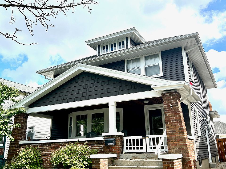 The whole house has been updated in the last few years while still maintaining the original charm! Upgrades include a new roof, new vinyl siding, a fenced in backyard, renovated kitchen, and lots more. The upstairs includes a very large primary bedroom with custom built-in wardrobes, plus two other bedrooms, and one full bath. The main floor has a living room, dining room, kitchen, half bath, and custom office with built in desk and closet (could be used as a fourth small bedroom). The basement has a carpeted rec room, storage, and laundry area.