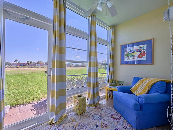 SOLD!!! UNDER CONTRACT FIRST DAY! MUST SEE VIDEO of 55+ community and condo! TURNKEY! Coveted 1st fl, RARE 1/1 B-Flrplan w/PANORAMIC GOLFCOURSE VIEWS from Lanai/SunRm n BedRm. Front views of courtyard. Beautifully/Prof'y decorated in CHARLESTON inspired interior with a single calling... to WELCOME YOU HOME. 2023: NEW ROOF!! 2019 REMODELED BATHRM w/DEEP SOAKING TUB. 2019 REMODELED KITCHEN w/Cabs,recessed lights, backsplash n countertop. PLANTATION SHUTTERS. Flr-to-ceil IMPACT WINDOWS/DOORS in Sunroom look out to golfcourse. Bedrm w/wall-to-wall closet, Rice 4poster bed, ensuite bathrm. 2nd door from hallway into bathrm for Guests. Old-World charm: medallions, chandelier, botanical art/upholstered furn, dishware, stemware, homegoods. LRm: QueenSofaSleeper, Media w/TV. RESORT STYLE AMENITIES