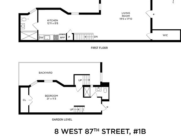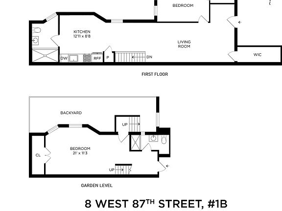 One Bedroom or Two Bedroom (landlord will put up wall) Duplex with Private Garden in the Central Park West Historic District