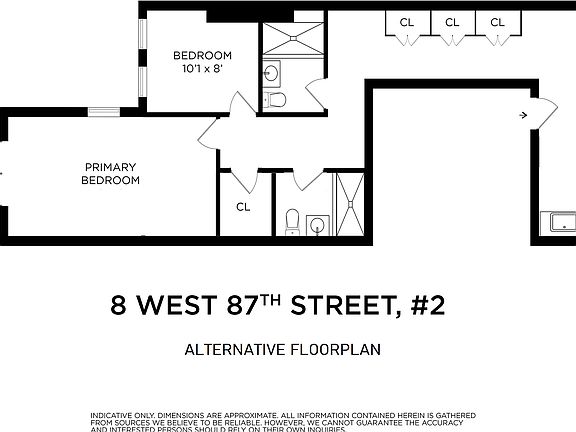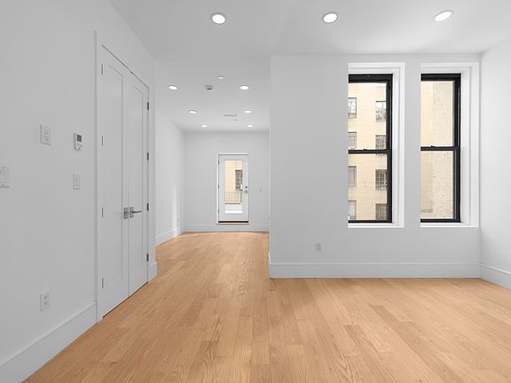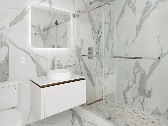 Floor-Through One Bedroom, Flex Two Bedroom (landlord will put up wall) with Private Patio. Nestled just off Central Park West, Residence 2 at 8 West 87th Street offers timeless Upper West Side elegance in a beautifully restored townhouse originally designed by Norman & Farber in 1898. This floor-through residence features a gracious one-bedroom layout with an alcove that can easily be converted into a second bedroom or home office, offering exceptional flexibility. The bright living and dining area flows into a chef's kitchen appointed with quartz countertops, custom cabinetry, and brand-new appliances. Both full bathrooms are finished in marble with illuminated mirror vanities, blending style and functionality. The primary bedroom is a serene retreat with direct access to a private patio, ideal for morning coffee, evening cocktails, or a quiet moment outdoors overlooking tranquil gardens. White Oak hardwood floors, Central Air Conditioning, high ceilings, generous closets, and contemporary finishes complete the home's sophisticated design.