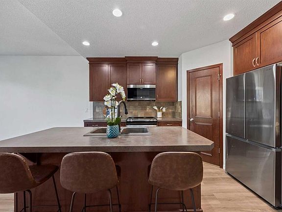 Step inside this bright and spacious 3 bedroom, 2.5 bath semi-detached home with an attached garage, perfectly located near the 12-acre pond, walking paths, community centre, shopping, restaurants, and public transit. Recently renovated from top to bottom, this home features modern vinyl plank flooring, brand new carpet, updated lighting and toilets, fresh paint, and more! The popular open-concept floor plan offers 9' ceilings, a warm designer colour palette, and a stunning custom fireplace that anchors the inviting living area. The kitchen is a chef’s delight, complete with rich cabinetry, a corner pantry, centre island, and sleek stainless steel appliances. The adjacent dining area is perfect for entertaining, with patio doors leading to a large deck and private fenced yard. Upstairs, discover three generous bedrooms, including a primary retreat with a walk-in closet and ensuite featuring a shower. The unspoiled basement is ready for your personal touch and includes a large window, rough-in plumbing, and full insulation—an ideal space to expand your living area. Enjoy being close to the South Health Campus with easy access in and out of the community. You’ll love the location, the updates, and the lifestyle that comes with living in New Brighton. Call today for your private showing!