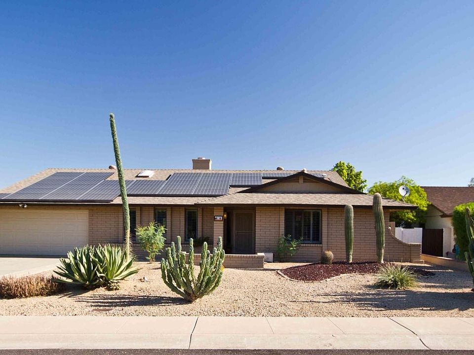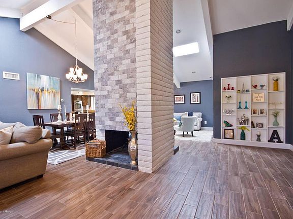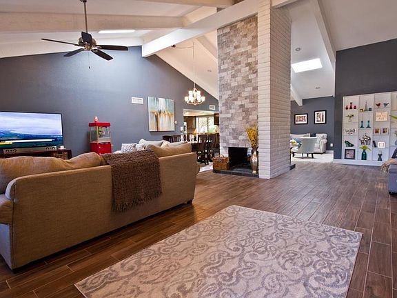 Lower your electric bill with this absolutely stunning remodeled energy-efficient home with dramatic mountain views! As you enter you are ''wowed'' with the open floorplan, smooth vaulted ceilings, newly installed recessed lighting & soaring two way fireplace which updated natural stone tiles. Tiled ''wood'' like floors throughout, carpet in bedrooms. Interior doors, baseboards and hardware and paint have been added for updated look. Barn doors close the bar area in the family room which is open to the kitchen. Sky light in living room, ceiling fans and shutters. Formal dining. Kitchen features granite counters tops, breakfast bar, pantry, appliances replace 7/2016. Master suite has recessed lighting, walk in closet w/barn door, extra closet in master bath, granite double sinks & shower.