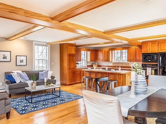 EASY TO SHOW!! CALL FOR AN APPOINTMENT! Old Garden Beach neighborhood! Enchanting home by the sea w/ striking architectural details, gorgeous hardwood floors, and large, open spaces. Lovingly maintained, this home has 4-5 bdrms, 3 full baths, a large open kitchen/family room/dining room, study w/ cherry built-in cabinets (also w/ connected full bath, offering the option of a 1st-floor master), living room with gas fireplace & 10-ft-high coffered ceiling, a 4-season sunporch w/ radiant-heated slate flooring, and an oversized 2-car garage w/ workshop and heated artist's studio above. The beautifully landscaped private backyard has a charming koi pond and a shed. Thoughtful upgrades recently added: newer windows, 1st-floor laundry, copper downspouts, brick and granite driveway, architectural cedar shingled roof, and a stand-alone back-up generator. Come visit to experience the flow and vibe of this elegant and thoughtfully renovated home close to the beach and downtown.