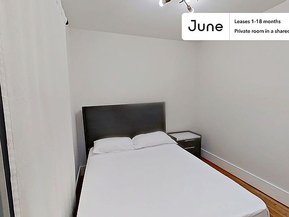This Queen room in Roxbury is available on a 12 month lease or a flexible short term (31 to 364 days) lease. You pick your custom start and end date. Monthly rent rate is determined by furnishing preference, move-in date and move-out date. Speak to a June representative for recommendations on the best stay duration for the lowest rate.