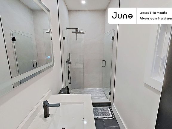 This Queen room in Roxbury is available on a 12 month lease or a flexible short term (31 to 364 days) lease. You pick your custom start and end date. Monthly rent rate is determined by furnishing preference, move-in date and move-out date. Speak to a June representative for recommendations on the best stay duration for the lowest rate.