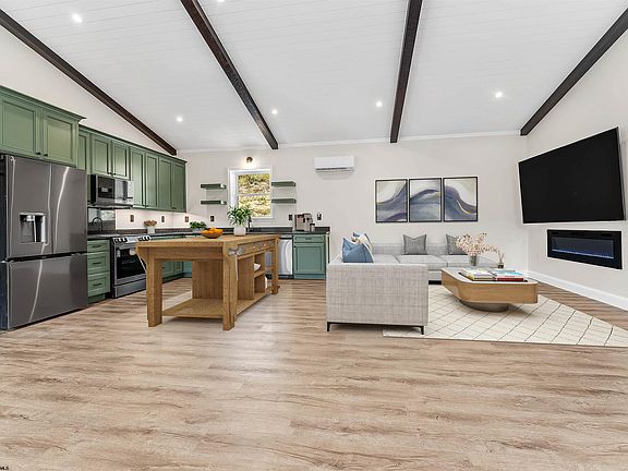 Here's your chance to own a brand-new DTD custom build! Built with practicality in mind, this one level home offers superior construction in a sensible package. Vaulted ceilings complete with beams highlight the open concept kitchen, dining and gathering areas allowing for the ultimate in flexibility of space. Twelve inch poured concrete walls ensure you will stay comfortable from elements year-round, even in the garage space complete with it's own heating and AC! Electric fireplaces in both the primary bedroom and gathering area will create a delightful atmosphere. Custom cabinetry in the kitchen is appointed with granite countertops, and boasts pull-out storage drawers, black stainless appliances and open shelving. With 1.86 acres filled with mature and lush trees, you’ll be able to enjoy the peace you’ve been craving.