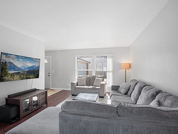 Welcome to this beautifully cared for ranch home, situated in a cul-de-sac. As you step inside, you are greeted by newer gleaming wood laminate flooring (2017) in the spacious living room. The living room is highlighted by a large picture window that brings in an abundance of natural light. The eat-in kitchen features many wood cabinets, counterspace, tile backsplash, new dishwasher (2022), and new disposal (2023). The laundry room has a cute pocket door. Washer and dryer included. Newer dryer in 2023. All three bedrooms are nice sizes each featuring beautiful wood laminate flooring. The primary bedroom includes double closets. The full hallway bathroom with corian countertops and tub. Attached 2 car garage has a new garage door in 2021 and additional built-in storage. Sprawling concrete driveway. Step outside and enjoy the backyard patio, perfect for entertaining. Walking distance to the parks. Near shopping, dining, and entertainment. Hoffman Estates High School District! This home is move-in ready and is a must-see!