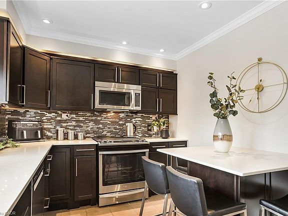 COMMERCIAL NON-CONFORMING OFFICE & HOME COMBO. Permitted uses are: Barber shops, Beauty shops, Estheticians, Hairdressing Salons, Tanning Salons, Shoe Repair Shops, Tailor Shops, Dressmaking Shops, Dry Cleaning Depots, Laundromats, Photographic Studios, Optical Shops. The Perfect Business Work-From-Home Opportunity! This Is A 1.5 Storey Home With An Abutting Commercial Space For The World's Shortest Commute! On The Commercial Side -The Building Is Currently Used As A Photography Studio. You Enter Into A Beautiful Reception Area With Slate Flooring, 9' Ceilings, Track Lighting, A Chair Rail, Large Windows Looking Onto Highway 8, Plus A Powder Room. The Waiting Room Offers Hardwood Flooring, 9' Ceilings and opens to a Large Studio with soaring ceilings. The Commercial Unit Also Features A Large Basement With An Office and Storage. Outside are 2 Large Signs, Perfect For Advertising Your Business on a busy street. Both Units ft. Separate High-Efficiency Furnace And Air Conditioning Units as well as security. The Home Features 2 Parking Spots And The Commercial Unit Offers 10 Parking Spaces. The Large Yard Offers A 2-Level Deck, An In-Ground Sprinkler System Plus A Large Shed With Hydro! The Home Itself Offers A Great Floor Plan And Has Been Beautifully Upgraded Throughout, Including Upgraded lighting, switches, an Electric Fireplace On A Stone Feature Wall, And Lots Of Windows - Some With California Shutters. The Dining Room Also Offers Hardwood Flooring, Crown Moulding Plus A Large Window With California Shutters. The Kitchen Has Been Upgraded to Ceramic Flooring, Stone Counters, Stainless Steel Appliances, A Breakfast Bar, A Beautiful Backsplash, Quartz Counters, Under And Over Cabinet Lighting, and Crown Moulding. The Primary bedroom A Walk- Out To A Large Balcony/Deck. The Basement Is Fully Finished With A 3rd Bedroom, Featuring Broadloom, Pot Lights, Built-InShelving And A Gas Fireplace, Plus A 3 Piece Washroom And A Large Storage Room.