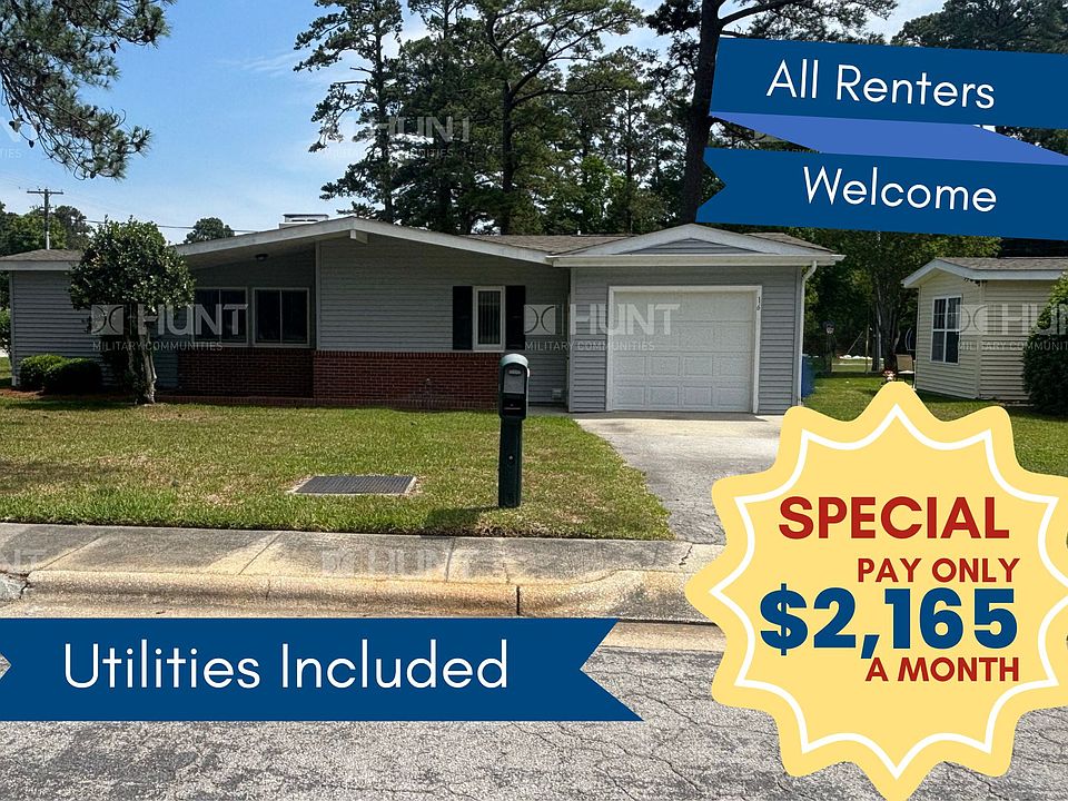 12-month lease. Basic utilities, pest control, landscaping and 24-hour maintenance included. Active Duty pays BAH and no security deposit! Call today for more details!