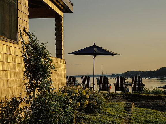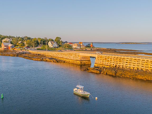 Nestled in Garrison Cove on Bailey Island, this beachfront cottage has recently been fully renovated with lots of love and attention, honoring its original character while adding new and comfortable amenities. Set against a working waterfront and framed by the Cribstone Bridge, this cottage offers private water frontage with a mooring & a view so picturesque we call it ''Harbor TV''. There's no shortage of spaces to enjoy the outdoors. Start your day with coffee on the covered porch, wrap around deck or on a kayak ride. End it with evening drinks by the beachside fire pit. Host backyard pizza parties with the hand-built wood-fired pizza oven, using herbs and tomatoes from the garden. After an ocean plunge rinse off in the outdoor rinse station. Enter through the mudroom, where a custom cherry bench provides a place to remove your shoes, hang up your bags and store your cooler behind sliding pegboard doors. Up the steps is a cook's kitchen featuring a Blue Star range with hood, brass backsplash, Smeg refrigerator, mahogany countertops & a porthole window. Enjoy the ease of entertaining in the open kitchen, dining and living with panoramic views of the water. Take the edge off cool summer days or keep warm in the winter by the Jøtul Combifire 4. The cozy nook off the main room is great for reading a book, watching a movie or putting up a guest. The spacious primary bedroom, featuring ensuite half bath and sliding doors to the porch, offers bedside views of the ocean. A cast iron sink, unlacquered brass faucet, built-in storage, and tile shower create a rare combination of character & comfort in the monochromatic shared full bath. Establishing a unique flow of space, cherry steps lead to the spare bedroom, which features a large closet w/ washer and dryer, Douglas Fir ceiling & windows overlooking the backyard. All w/in short walking distance to three restaurants; Cook's, Sundrenched, & Salt Cod Cafe. Property is occupied & located on a dead end street - no drive-bys.