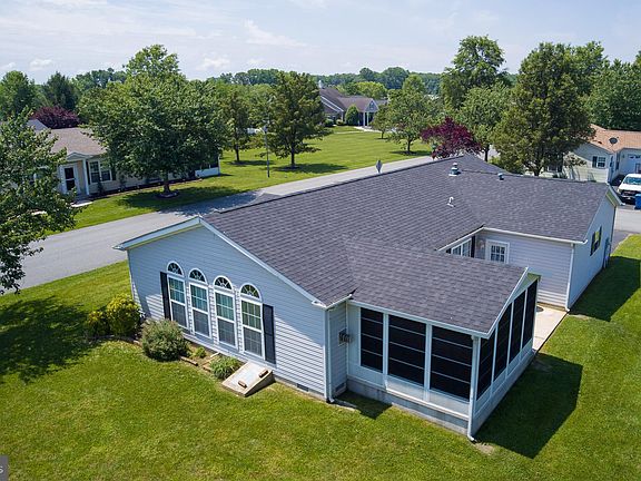 This casual yet elegant Remington model home features an open concept living space with pretty palladium windows, handsome hardwood floors, gas fireplace, and vaulted ceilings throughout. Enjoy the cozy three season porch, private patio, and updated kitchen with granite counters, center island, and stainless steel appliances. Three comfortable bedrooms and two full baths including the on-suite with walk-in shower, soaking tub, and double vanity. New Roof (2022), New A/C (2017), and one car garage nestled on a beautifully landscaped oversized corner lot in Barclay Farms; Kent County's premier 55+ active lifestyle community. Community amenities include: pool, clubhouse, fitness center, spa, library, game rooms with billiards table, walking paths, catch & release fishing pond, fitness classes , various clubs & other activities to enjoy. Land lease $600.56 per month includes all community amenities, lawn maintenance, trash removal, road maintenance & snow plowing. Quiet setting conveniently located in Camden Delaware with easy access to shopping, restaurants, healthcare, and the Delaware beaches.