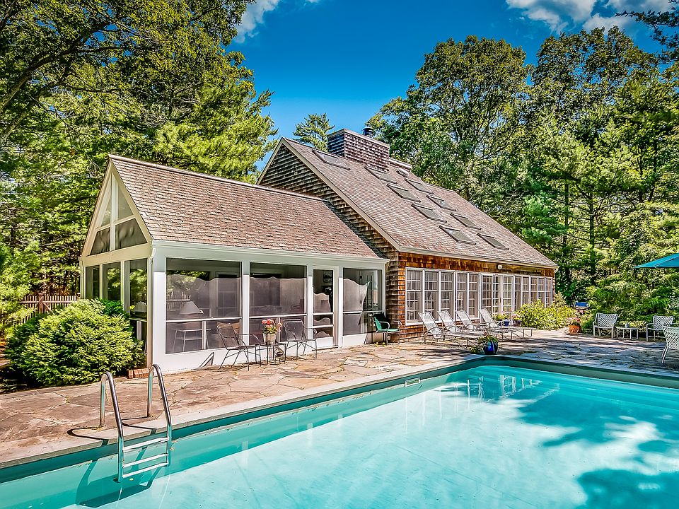 Rental Registration #: 18-1711 This beautiful, airy 5 bedroom home is situated on a quiet road in the Northwest Woods just a few miles from the ocean and a mile from the bay. A guest suite on the ground floor sleeps 4 and has a perfectly appointed bath. Upstairs there are 3 more bedrooms and two baths.Truly indoor/outdoor access as the large living room with a screened in porch is a perfect spot for entertaining which flows into the beautifully landscaped backyard and pool area. Bright and filled with skylights and windows throughout and a fireplace for cooler nights. There is a washer/dryer, dishwasher, CAC, cable tv, wifi, heated pool..