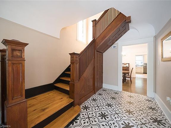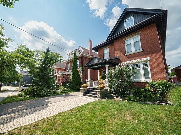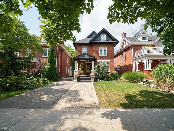 Welcome home to 8 William Street, set in Brantford’s Victorian Historic District. This solid brick 2-storey home with 2,451 sqft, 4 bedrooms, 2.5 baths and a remarkable attic loft, was meticulously restored to its original grandeur in 2017–2018 and offers spectacular curb appeal. Step inside to a foyer defined by ornate ceramic tile, a broad hardwood Victorian staircase and original wood trim that reflects the workmanship of its era. The main floor highlights refinished pine hardwoods, Palladian windows, intricate coving & moldings, with period hardware & door fixtures throughout. The living & dining rooms feature bay windows, custom California shutters and a refinished oak fireplace in the living room. The kitchen showcases a crisp white palette of cabinetry set against a mosaic tile backsplash, apron-front sink and stainless steel appliances. A door opens to the side porch, and "backstairs" link the kitchen to bedrooms, perfect for quick trips upstairs or late-night snacks. Completing the main floor is a newly constructed 2pc bathroom combined with the laundry room. The second floor offers 4 bedrooms with refinished hardwoods and a 5pc bath. The stunning loft retreat boasts vaulted ceilings with beams, skylight, dormer, wet bar and a 3pc bathroom. The basement walks-up to a fenced professionally landscaped backyard with interlock patio, gardens & green space that backs onto a picturesque city park & steps to the Grand River trail. William Street, recognized within the Dufferin Ave–William St Heritage Conservation District, is notable for its potential in Brantford’s continued growth & development. With timeless curb appeal & thoughtful restoration, this home offers both charm & function in one of the city’s most desirable settings, close to schools, shops & parks. Additional Features Include: Select new windows installed (main bathroom, kitchen, basement). New roof, eavestroughs, soffit & facias (2017), Full electrical rewiring. See Supplements for all updates!