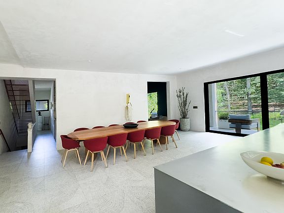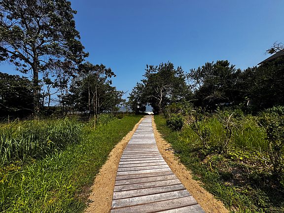 Featured in the Spring 2025 edition of Elle Decor, this professionally designed residence blendshigh-end finishes with relaxed Hamptons charm.Escape to this stunning 4-bedroom, 4-bath, 2 half-bath home in a private beach communityjust 1 mile from Sag Harbor Village and a 2-minute walk to the bay. With two full kitchens, two spacious TV rooms,and multiple indoor and outdoor living areas, it's ideal for families or groups seeking bothcomfort and flexibility.The light-filled main floor features an open-concept chef's kitchen (Bosch and Sub-Zero),bright dining and living areas, and two large bedroom suites. Upstairs, the primary suite includesan 820 sq. ft. private terrace overlooking a protected nature reserveperfect for morning coffeeor stargazing.On the garden level, the living room opens directly to the outdoors, with large glass doorsframing views of landscaped seating areas. Inside, polished concrete floors, a built-in bench, asuspended woven daybed, and a fireplace create a relaxed gathering space. Just outside, concretebenches, a curved dining table, and a propane fire pit offer a comfortable place to enjoy meals orevenings under the sky. Smooth stone pavers and pea gravel keep things low-maintenance, whilea hot/cold outdoor shower adds a refreshing touch.The powder room here features vibrant floral GUCCI wallpaper and a sculptural faucet shapedlike a figure's headsmall but memorable for guests. A second bathroom in deep blue tones issimple and functional. The utility room includes a standard washer and dryer for convenience.The stairs connecting the floors are crafted from perforated metal, letting light pass through foran airy, open feel.With direct access to a private bay beach, preserved land for added privacy, and top Sag Harborattractions just minutes away, this home offers the ultimate summer escapedesigned for easy,comfortable living in a beautiful setting