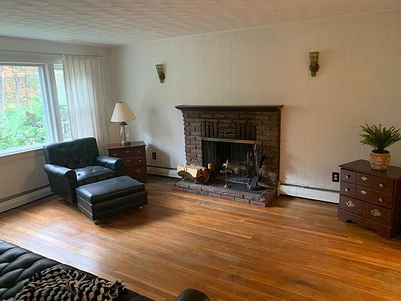 A little love and elbow grease can make this home shine again. Located on a Cul-De-Sac this ranch style home is ready for its next loving family. Hardwood floors run thru out most of the first floor, with the exception of the kitchen. The living room offers a large front window and fireplace for those cold winter nights to come. The kitchen is open to the dining area which has a beautiful view of the large, flat, private back yard. Access from the driveway to the one car garage is a single door as well as the garage doors and opens to the dining area, making it easy to bring in the groceries. Located on 1.55 acres and easy access to shopping, transportation and highways.. Some updates include, newer windows in the basement, brand new front door, new kitchen stove, newer oil tank and electrical has been updated recently.