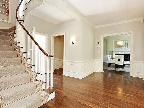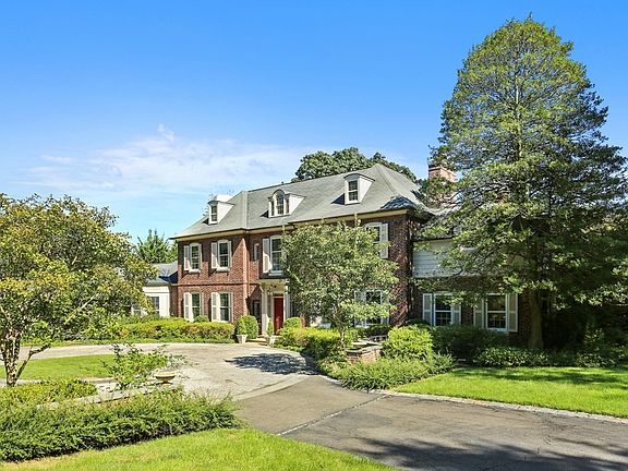 Updated and refreshed stately Georgian Colonial built in 1920, expanded and restored to the grandeur befitting the magnificent property. Handsome brick faade is distinguished with beautifully-scaled rooms and idyllic landscaped grounds. Foyer flows into light-filled solarium with five sets of French doors opening to an expansive terrace. Light-filled living room, adjacent study and formal dining room all feature elegant moldings and large fireplaces with richly carved mantels. Modern amenities mix seamlessly with formal rooms and a beautifully-appointed kitchen with brick fireplace and butlers pantry, adjacent mudroom and bonus room with half bath. Second floor features master suite with gas fireplace, dressing galley with five closets. Two additional bedrooms with shared bath and 4th bedroom with hall bath. Third floor features three bedrooms and hall bath. Park-like grounds provide the perfect setting with walkways in gardens, large terrace with fireplace for outdoor entertaining and brick archway separating the newly re-built detached two-car garage and the entry to the attached garage. Property backs to Sunset Lane allowing for an easy walk to town and train.