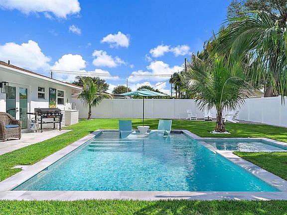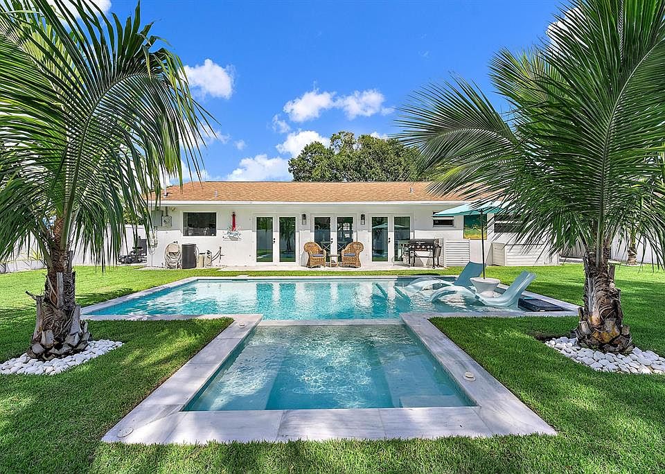 Oversized islandHot tubWorkout roomBrand-new heated poolElegant hardwood floorsPeloton bikeExpansive fenced yard